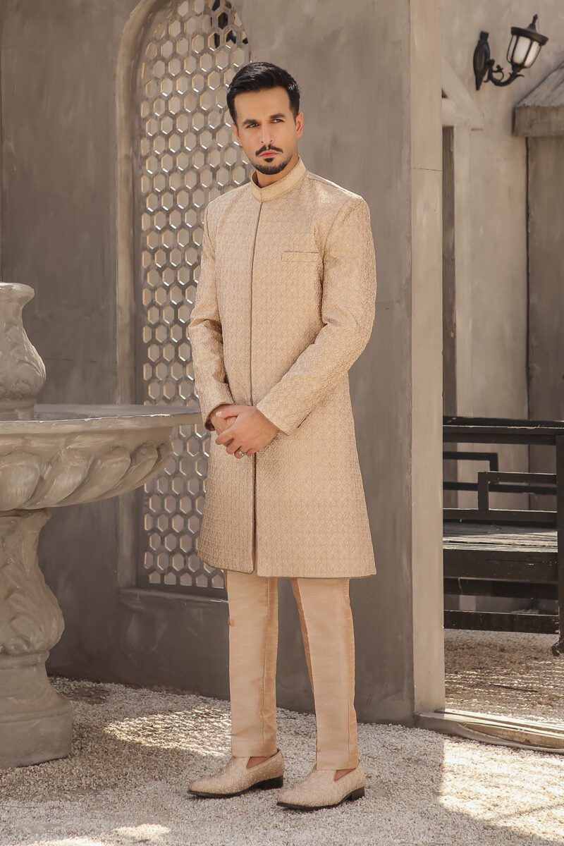 Discover the allure of our Maqbool men’s Sherwani collection in Pakistan, featuring: